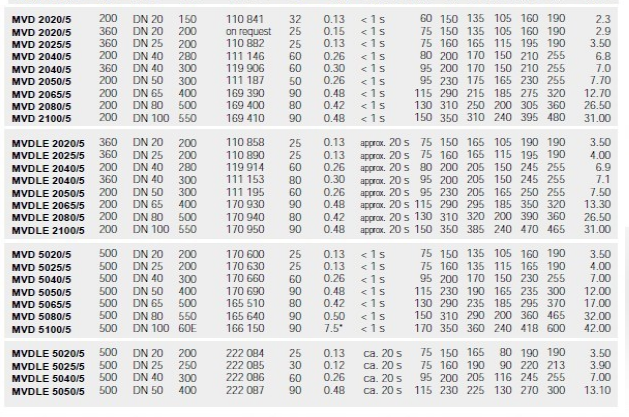 MVDLE 2020/5,MVDLE 2025/5,MVDLE 2040/5,MVDLE 2040/5,MVDLE 2050/5,MVDLE 2065/5,MVDLE 2080/5,MVDLE 2100/5,